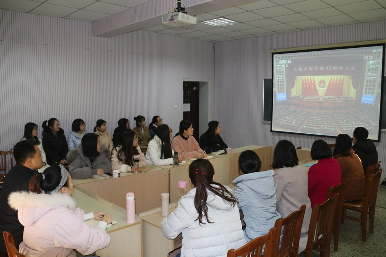 多功能教室和教学8号楼201室实时收看“庆祝改革开放40周年大会”直播。