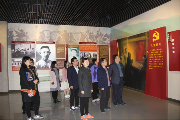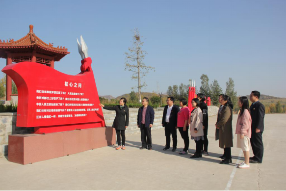 下午,党员们赴石门山镇黄沟村参观曲阜市农村第一个党支部旧址。通过观看红色文化墙上的中国共产党奋斗史主题精神宣传画,所有党员重温了中国共产党艰苦卓绝的光辉历史,进一步感悟了中国共产党从创立初期到全民抗战、解放战争、改革开放以及中华民族伟大复兴时期的革命传统和红色精神。在“初心之问”展板前,随着茌淑君同志的宣读,党员们凝视着红旗上书写的问句“当年那些梦想实现了吗?”“我们还记得入党时的承诺吗?”等等,拷问自我,表示今后将以实际行动坚定而响亮地回答好“初心之问”这一命题。在“中国共产党曲阜市农村第一党支部”纪念碑前,党员们集体宣读入党誓词,以表达对革命先辈的深切缅怀和崇高敬意。