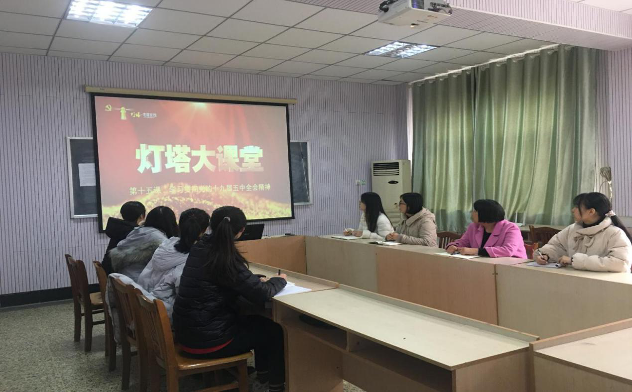 会议室和8号教学楼201教室组织学习“灯塔大课堂”第十五课《学习贯彻党的十九届五中全会精神》。本期“灯塔大课堂”由中共中央党校习近平新时代中国特色社会主义思想研究中心研究员、中央党校报刊社副社长胡敏同志以“开启新征程 夺取新胜利——深入学习党的十九届五中全会精神”为题,着重强调了充分认识党的十九届五中全会的重要意义。
