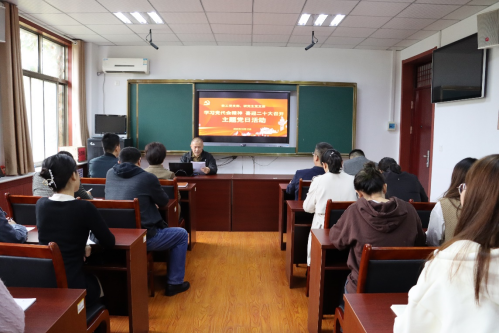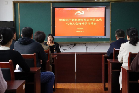 首先,学校第九次党代会代表何爱霞教授为全体党员做了《中国共产党曲阜师范大学第九次代表大会精神学习体会》的报告,何教授从学校第九次党代会的“总体情况、大会主题、党委报告核心内容、纪委报告核心内容”四个方面做了详细阐述,言简意赅、画龙点睛,使全体党员对党代会的精神有了更新更深更全面的认识与理解。她指出:大会气氛热烈,庄严隆重,主题鲜明,邢光书记作的《强化特色 追求卓越 为建设世界知名的高水平孔子家乡大学不懈奋斗》的报告高屋建瓴、立意高远,对过去的总结全面翔实、客观公正,对未来的规划目标明确、重点突出、路径可行。我们每位曲园人都应不忘初心、牢记使命,踔厉奋发、勇毅前行,为学校高质量发展贡献自己的力量,以优异成绩迎接党的二十大胜利召开。