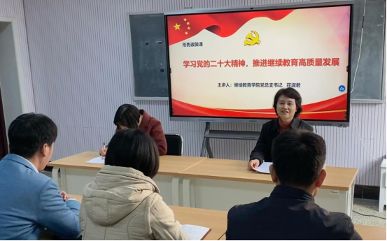 党总支书记茌淑君以“学习党的二十大精神,推进继续教育高质量发展”为题,为体球网