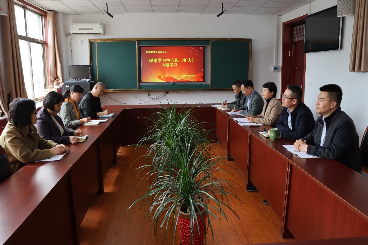 党总支理论学习中心组(扩大)开展了2023年第二次集体学习。专题学习习近平总书记重要讲话和全国两会精神,传达学校部署意识形态方面的工作以及学习习近平总书记关于做好新时代党的统一战线工作的重要思想,党总支书记茌淑君主持会议。