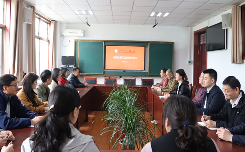 会上,茌淑君首先传达了近期学校下发的《关于进一步加强教职工政治理论学习的通知》,带领全院教职工集体学习了《曲阜师范大学教职工政治理论学习制度》,她指出:要提高政治站位,将教职工政治理论学习情况纳入落实意识形态工作责任制监督检查范围;要聚焦学习重点,把习近平新时代中国特色社会主义思想作为学习的首要内容;要拓展学习载体,坚持集中与自学、线下与线上、理论与实践等多种形式相结合,从而进一步推进教职工政治理论学习制度化、规范化和常态化,不断提高全院教职工思想政治素质。