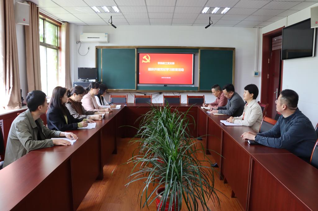 教工党支部召开会议动员部署党纪学习教育,组织全体党员对《中国共产党纪律处分条例》进行集中学习,会议由教工党支部纪检委员李宗花主持。