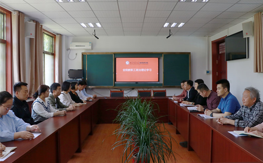 领导班子及全体教职工参加,会议由党总支书记茌淑君主持。