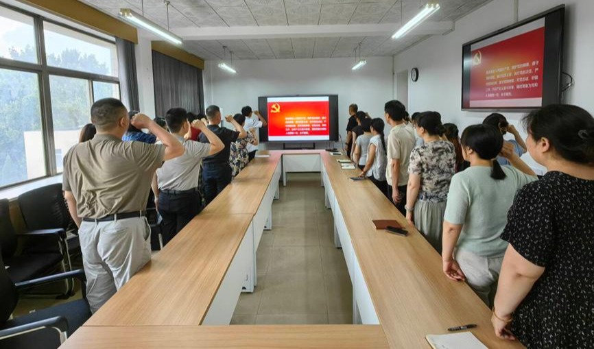 党课结束后,研究生党支部书记吕建强带领全体党员重温入党誓词。全体党员庄严肃立,高举右拳,“我志愿加入中国共产党……随时准备为党和人民牺牲一切,永不叛党。”一句句誓言掷地有声,不仅唤醒了党员们入党时的初心与使命,更让大家在思想上接受了一次深刻的洗礼,进一步坚定了为党和人民事业奋斗终身的决心。