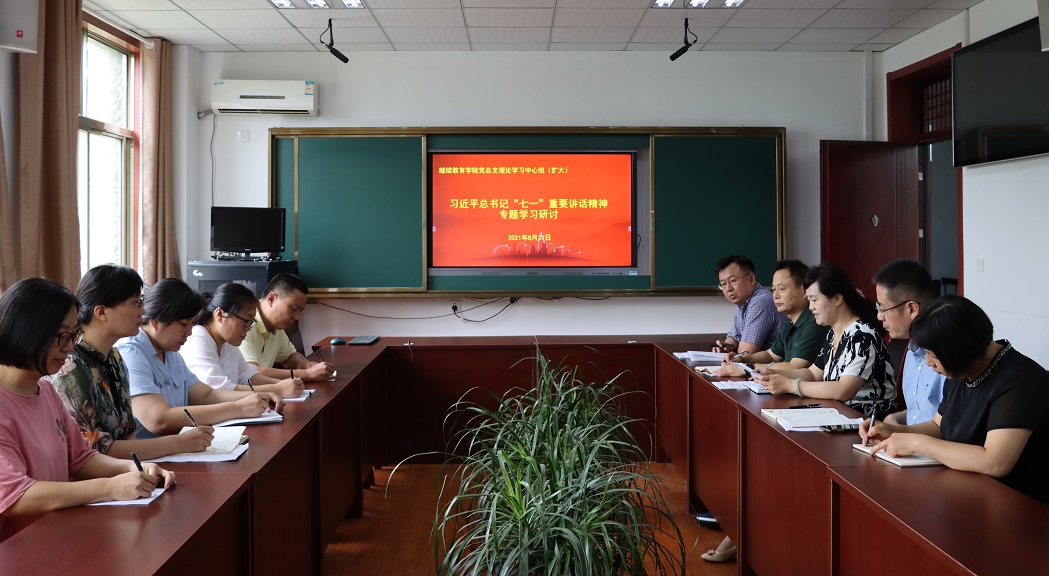 开展党史学习教育的重要内容。我们要深刻把握习近平总书记讲话的内涵,深刻理解中国为什么需要中国共产党,深刻认识中国共产党为中华民族伟大复兴贡献了什么,深刻理解马克思主义为什么是引领中华民族伟大复兴的科学真理,要用历史映照现实,远观未来,勇于奉献,正如总书记在讲话中号召,要以实现中华民族伟大复兴为己任,增强做中国人的志气,骨气,底气,不负时代,不负韶华,在推动继续教育事业高质量发展上闯出新路子,彰显新担当,展现新作为,谱写学校继续教育事业新篇章。