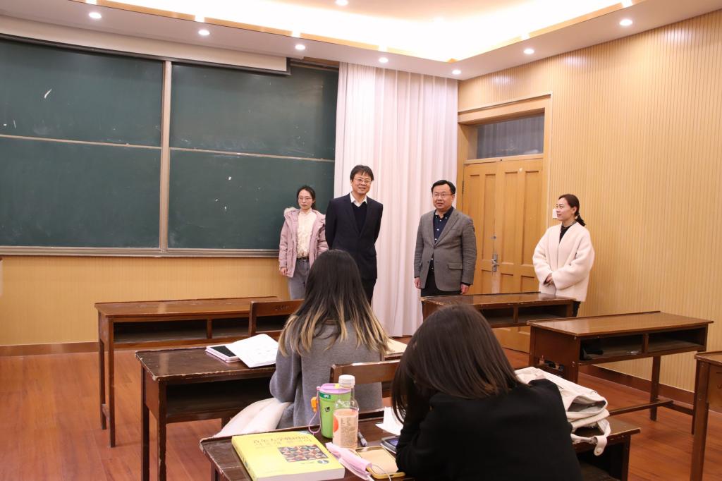 2022年以来开展的赴韩国留学项目取得的成绩予以充分肯定。随后,刘刚看望了赴韩留学项目本科项目班与硕博项目班的同学们,与同学们亲切交谈,了解他们的学习与生活,并仔细查看了教室硬件设施。他鼓励同学们对学业要有一个明确的目标,珍惜当下的学习时光,希望大家潜心向学,勤问慎思,在学习这条征途中坚持不懈,积极进取。