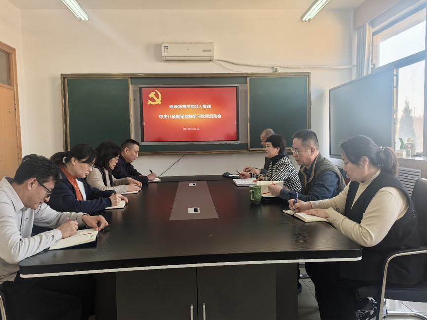 会上,茌淑君传达了学校2025年全面从严治党工作会议和深入贯彻中央八项规定精神学习教育启动会的相关精神,根据上级和学校党委的工作要求,深入贯彻中央八项规定精神学习教育于3月中旬启动、7月底前基本完成,坚持聚焦主题、简约务实,不分批次、不划阶段,一体推进学查改,融入日常、抓在经常。