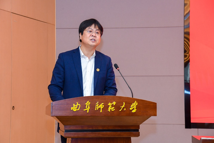教授高歌,新生代表胥勇和校外教学点代表、潍坊市寒亭区加华培训学校校长王庆泉先后发言。高歌教授寄语新生们学无止境,要以勤勉为舟,以毅力为桨,在人生的第二赛道上,书写属于自己的“犁牛之子”传奇。胥勇表示将铭记学校领导的殷切嘱托与师长的谆谆教诲,珍惜在孔子故里求学的宝贵时光,明德修身,求是笃行,学以致用,实现自己的人生目标。王庆泉表示要继续加强与大学的沟通与合作,积极参与学校的教育教学改革,规范办学,努力提升校外教学点管理和服务能力。