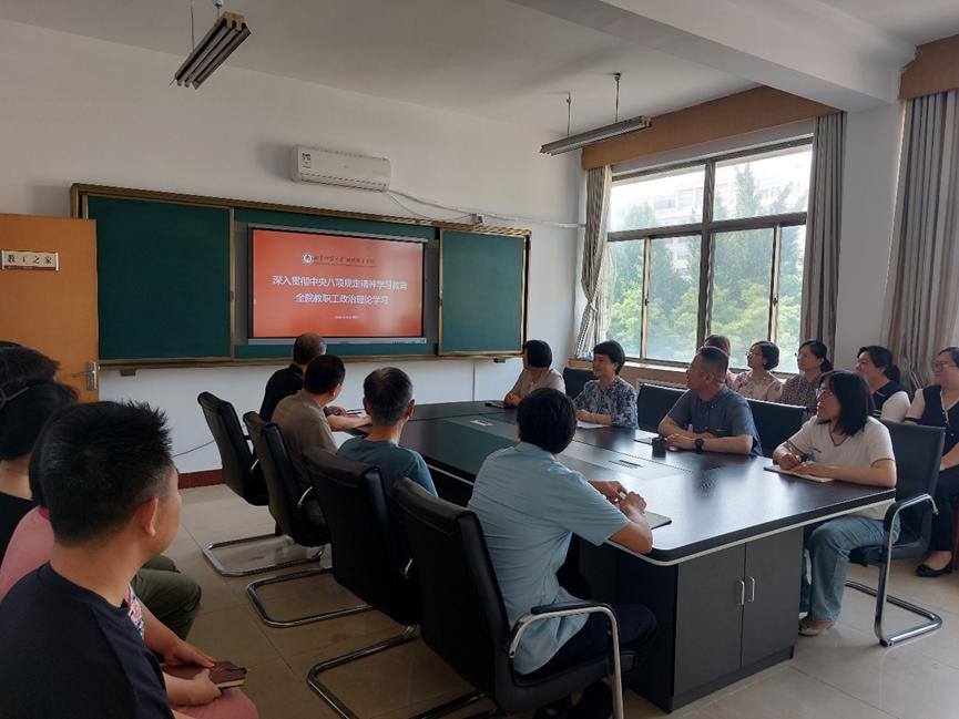 召开全体教职工会议,开展深入贯彻中央八项规定精神学习教育,党总支书记茌淑君主持会议并讲话。