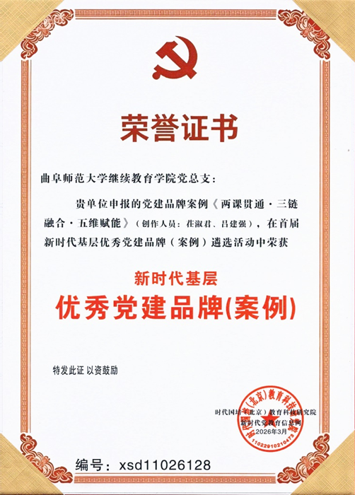 报送的党建工作案例《两课贯通•三链融合•五维赋能》(创作人员:茌淑君、吕建强)凭借鲜明的特色、扎实的举措和显著的成效,在31246个参赛案例中脱颖而出,荣获新时代基层优秀党建品牌(案例),充分展现了体球网