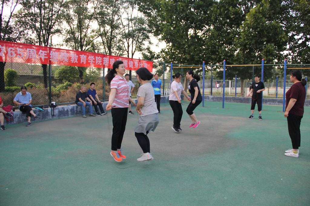 本次比赛共设单人跳绳、双人跳绳、集体跳绳、花样跳绳四个项目。俗话说,临阵磨枪,不快也光。比赛还没开始,每位教职工都摩拳擦掌跃跃欲试,比赛前工会主席徐青首先宣读了比赛规则和秩序册名单,随后带领大家积极热身,为比赛做好准备。比赛时,单人赛上大家奋勇争先,集体项目上齐心协力,赛场气氛异常活跃,热闹非凡,大家都本着“友谊第一,比赛第二”的赛场精神,互相加油鼓劲,加油声、呐喊声、欢笑声不绝于耳。