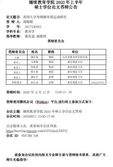 体球网即时比分 2020年上半年硕士学位论文答辩公告2