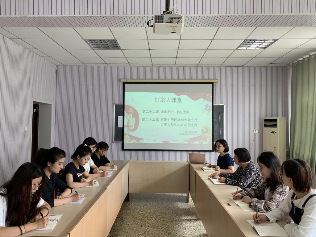 研究生党支部全体师生党员在8号教学楼201教室集中学习了“灯塔大课堂”第二十二课《永葆初心 勇担使命》和第二十三课《实现中华民族伟大复兴是百年大党矢志奋斗的主题》。