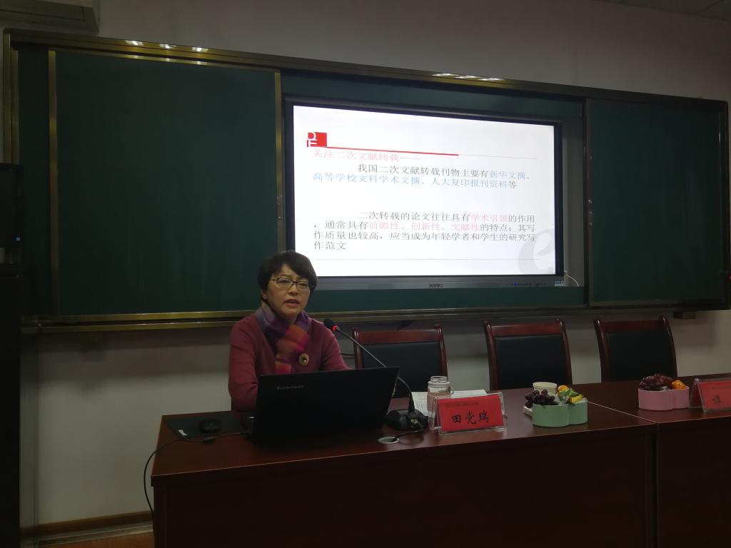 随后,田党瑞主编从学术创新、学术逻辑以及学术影响三个维度切入,结合实际案例对“何以体现学术价值”进行了详细阐述。重点强调了学术期刊所要关注的四个要素。其所述内容主题鲜明、中心突出,加深了在座师生对论文学术价值与学术期刊的认识。