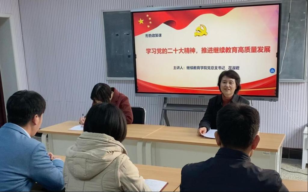 党总支书记茌淑君以“学习党的二十大精神,推进继续教育高质量发展”为题,为体球网