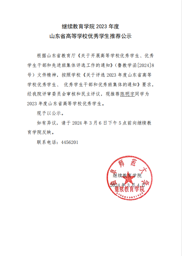 体球网即时比分 2023年度山东省高等学校优秀学生推荐公示
