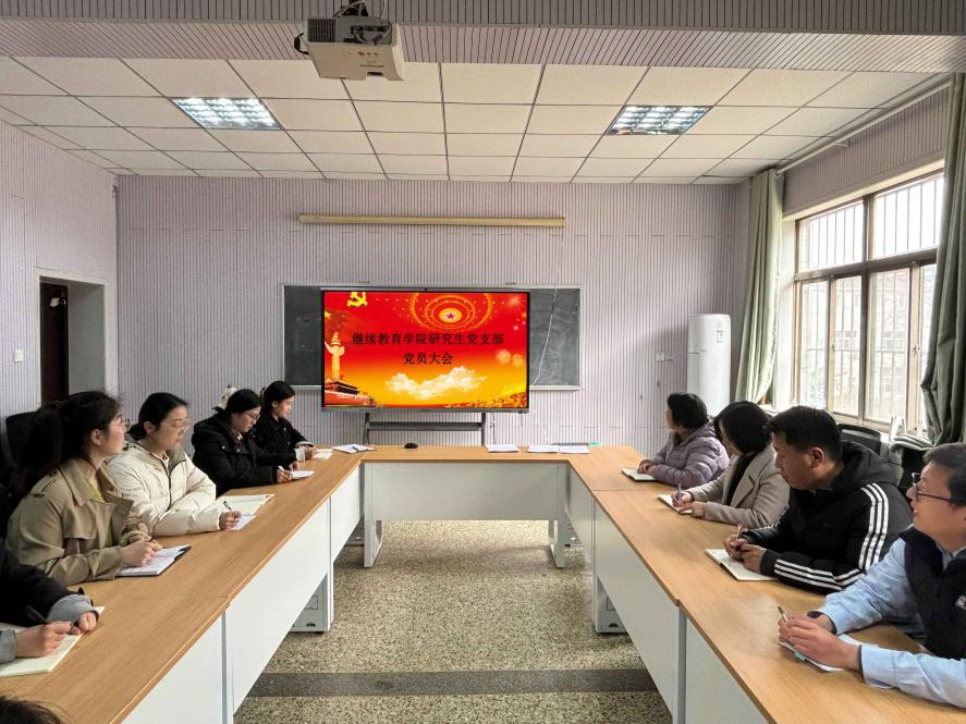 研究生党支部在8号楼201教室召开全体党员大会,集体学习“两会”精神。会议由研究生党支部书记吕建强同志主持。