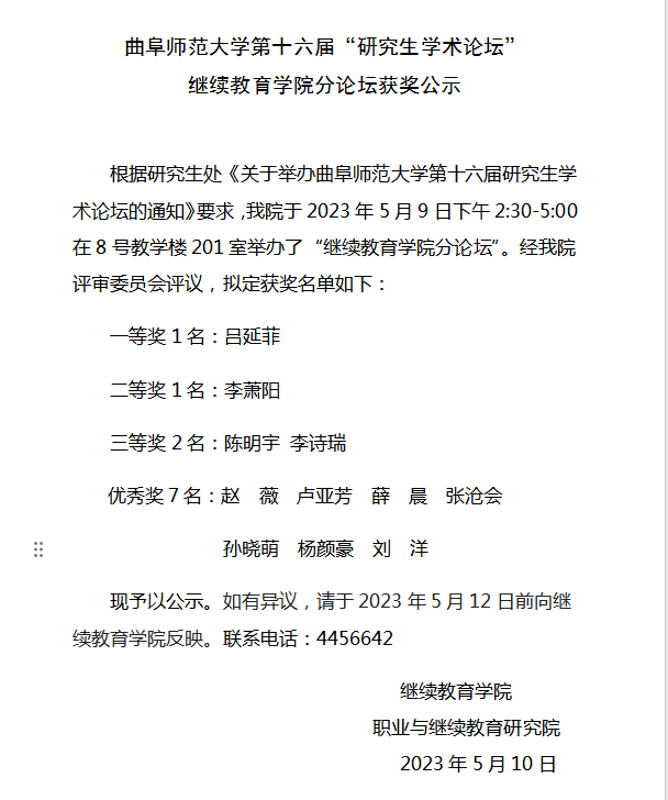 曲阜师范大学第十六届“研究生学术论坛” 体球网即时比分 分论坛获奖公示
