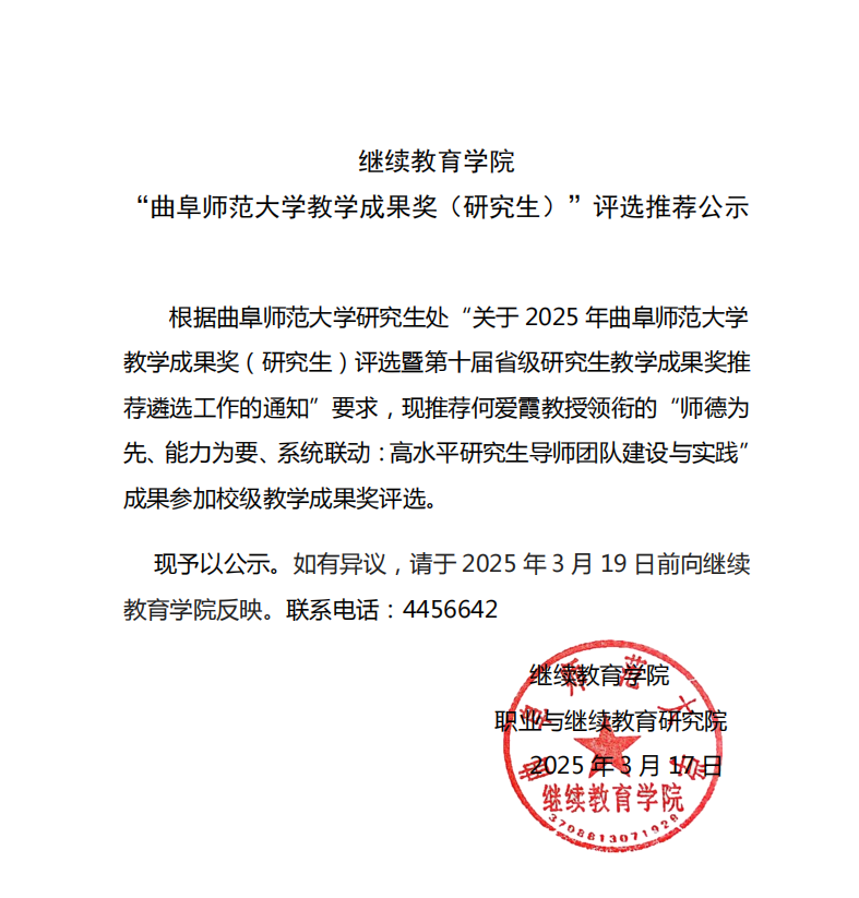 体球网即时比分 “曲阜师范大学教学成果奖(研究生)”评选推荐公示