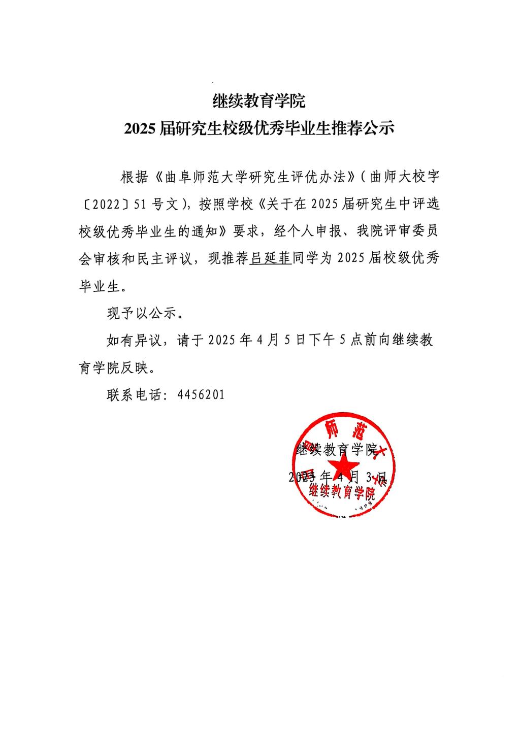 体球网即时比分 2025届研究生校级优秀毕业生推荐公示