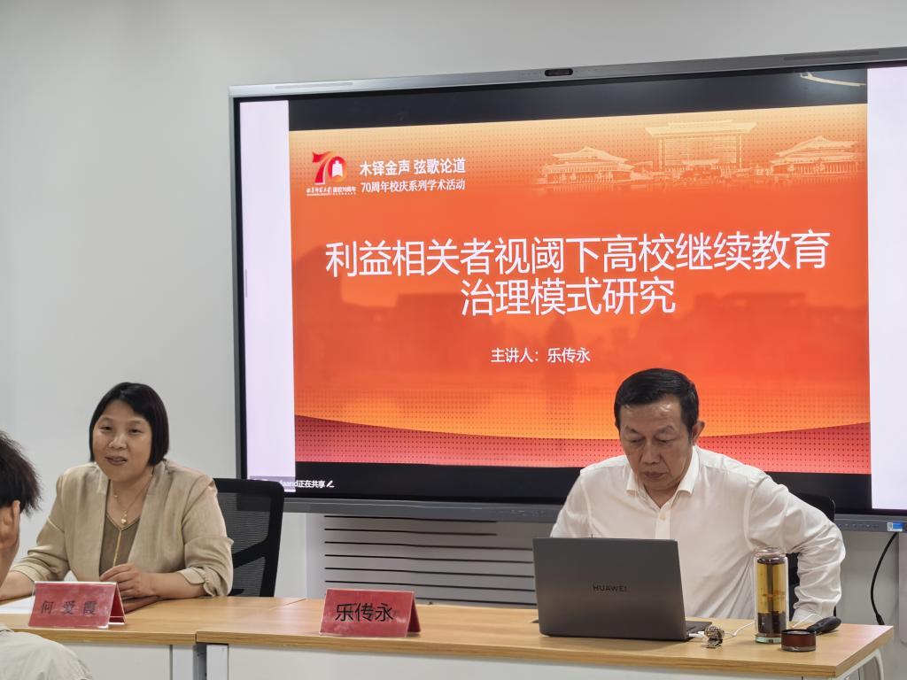 校长乐传永教授作《利益相关者视阈下高校继续教育治理模式研究》专题报告。报告由职业与继续教育研究院院长何爱霞教授主持,全院师生代表参加活动。