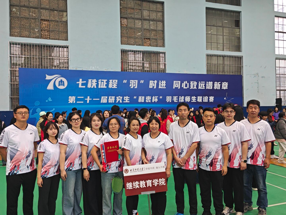 10月24—26日,体球网 师生参加曲阜师范大学第二十一届研究生“和衷杯”羽毛球师生联谊赛,体球网 派出 6名教师和6 名研究生组队参赛,并获得了体育道德风尚奖。比赛过程中,参赛队员努力拼搏,全力以赴,精诚团结,各自打出了自己的水平,展现出了昂扬向上的精神姿态和日趋进步的球队实力。本次比赛强化了师生沟通交流,强健了体魄,锻炼了意志,期待本次比赛助力推动全体师生的学习和教学科研工作,期待来年体球网 成绩更上层楼。